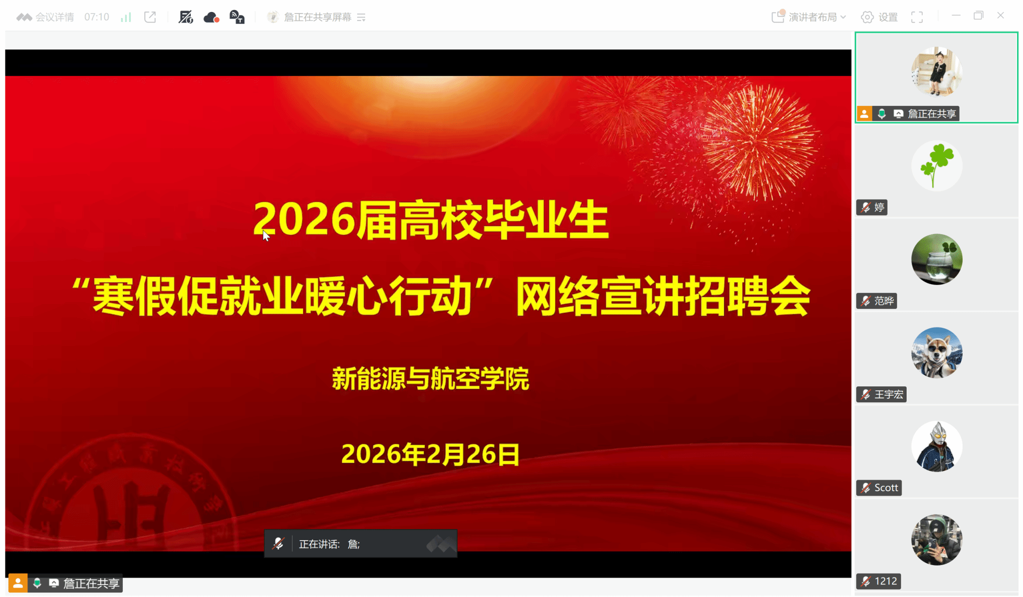 2026-03-012月26日,新能源与航空学院2026届毕业生“寒假促就业暖心行动”线上专场宣讲招聘会顺利落幕。本次活动以线上为载体、以就业为核心,聚焦新能源、航空、无人机、新能源汽车服务等重点领域,精准搭建校企对接桥梁,切实为毕业生求职就业保驾护航。新能源与航空学院党总支副书记范晔出席宣讲会,就业辅导员王震主持本次活动。本次招聘会精心邀请南通弘朗汽车销售服务有限公司、南京昀燚航空培训服务有限公司、新华优力能源科技保定有限公司、...