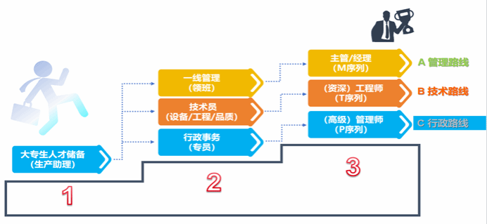 晋升通道:(去年大专实习生已大部分升职到班长或技术员)