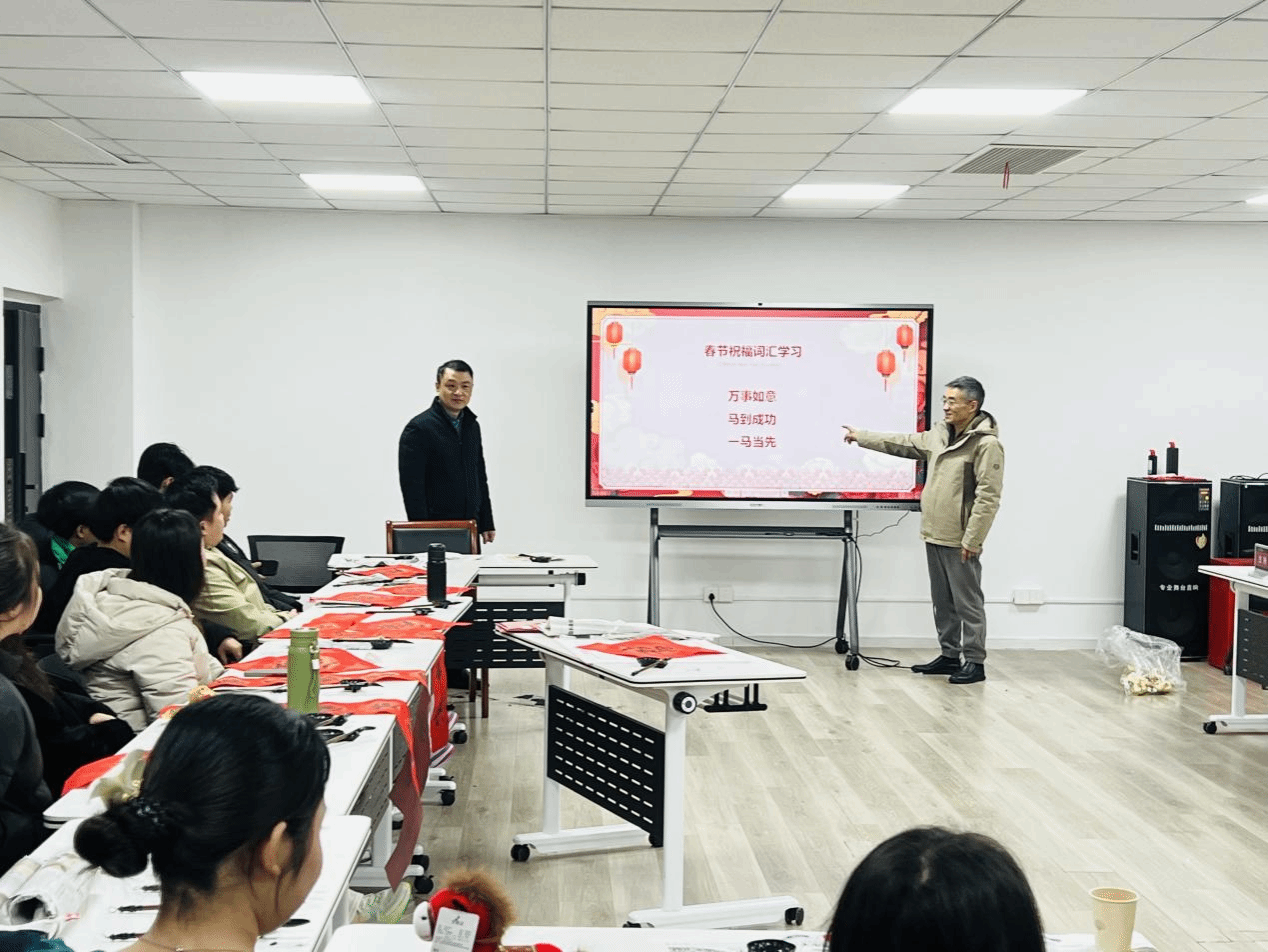 活动内容丰富、形式多样:留学生们挥毫书写“福”字,体验笔墨丹青中的年味;学说“马到成功”“一马当先”等春节祝福语,感受汉语魅力;欣赏由梦娜同学演唱的中文歌曲《童话》及老挝传统舞蹈,领略文化交融之美。除了沉浸式的文化体验外,活动现场还同步开展寒假安全教育、腊八节习俗讲解,并组织留学生签署《在校安全承诺书》,在传递节日温情的同时,筑牢留校学生的安全防线。