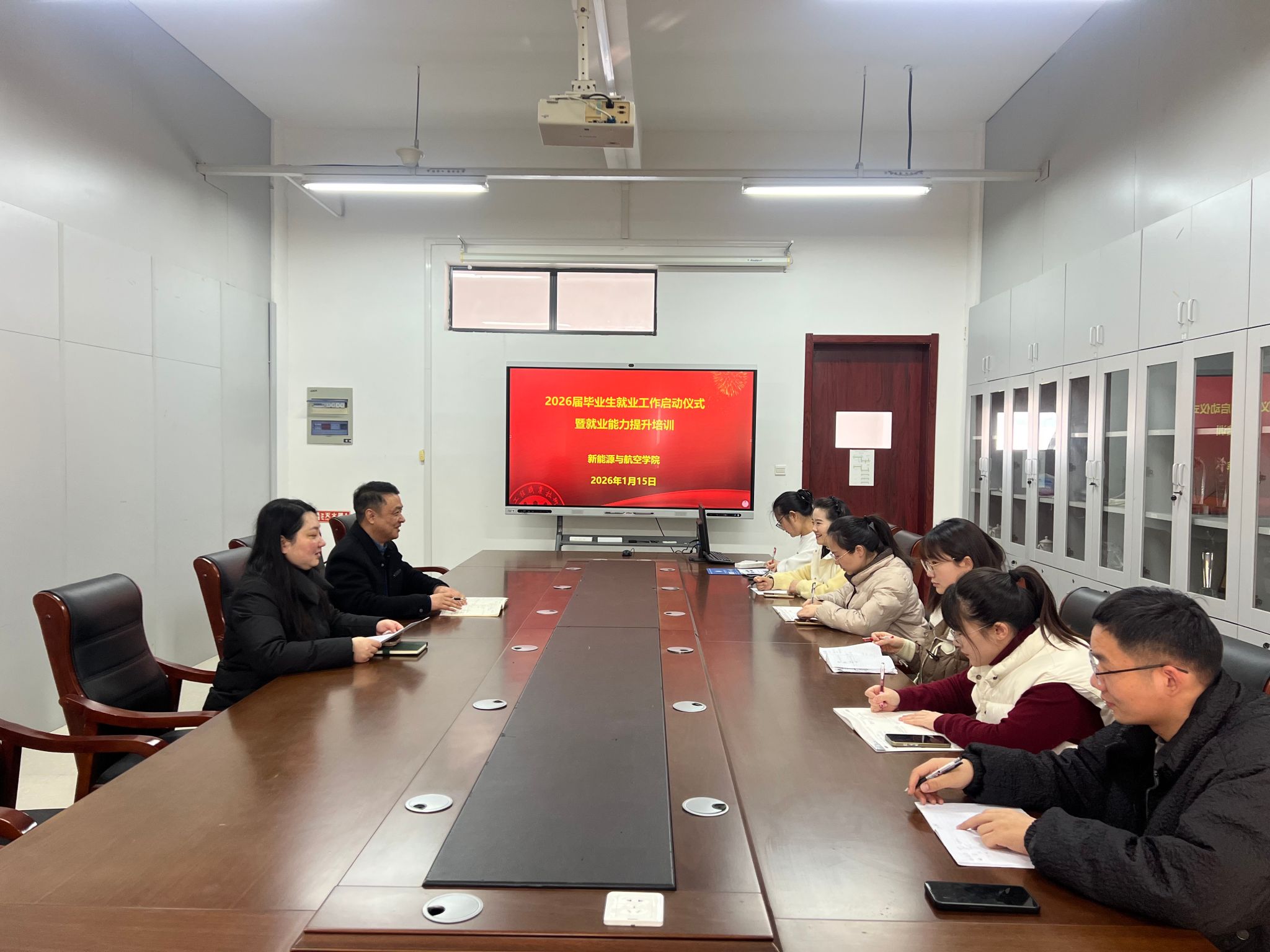1月15日,新能源与航空学院在实训楼4号楼会议室举行2026届毕业生就业工作启动仪式暨就业能力提升培训。学院党总支副书记陈益飞、就业辅导员和2026届毕业班班主任参与,学院党总支副书记范晔主持。