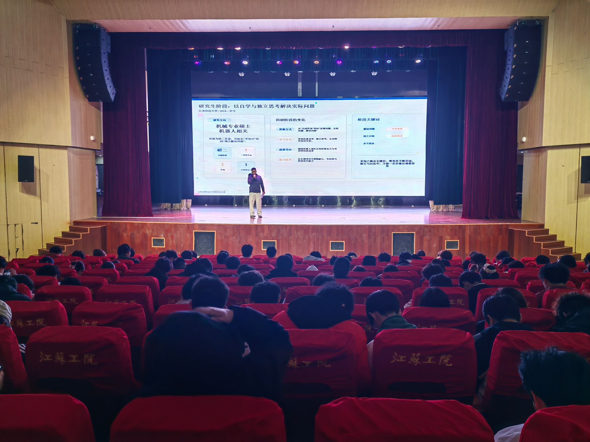 本次分享会邀请到2019级轨道机电专业校友林元超。他现为江苏科技大学机械专业硕士研究生,他围绕从专科到本科再到硕士的成长路径,分享了担任班长、专转本、考研及科研实践的经历,鼓励学弟学妹打好基础、持续学习、坚持积累。他多次获得一等奖学金,已发表论文1篇、申请专利2项。