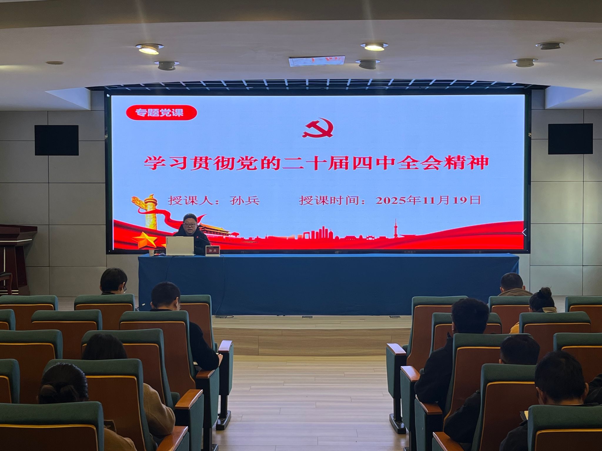11月19日下午,副校长孙兵为后勤与基建处、安全保卫处和航空与交通工程学院全体教职工作题为“学习贯彻党的二十届四中全会精神”专题党课。