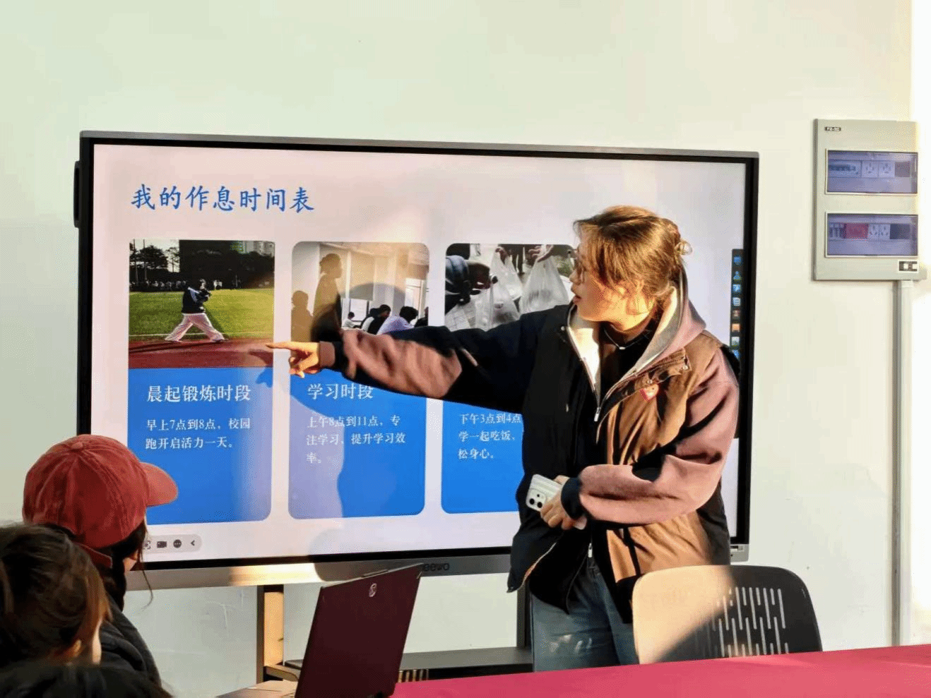 活动现场,同学们分享了个人时间管理计划。优秀学生代表受邀现身说法,从高效学习、坚持锻炼、避免熬夜等角度分享经验,为同学们提供了切实可行的自律生活参考,现场互动频繁,反响热烈。