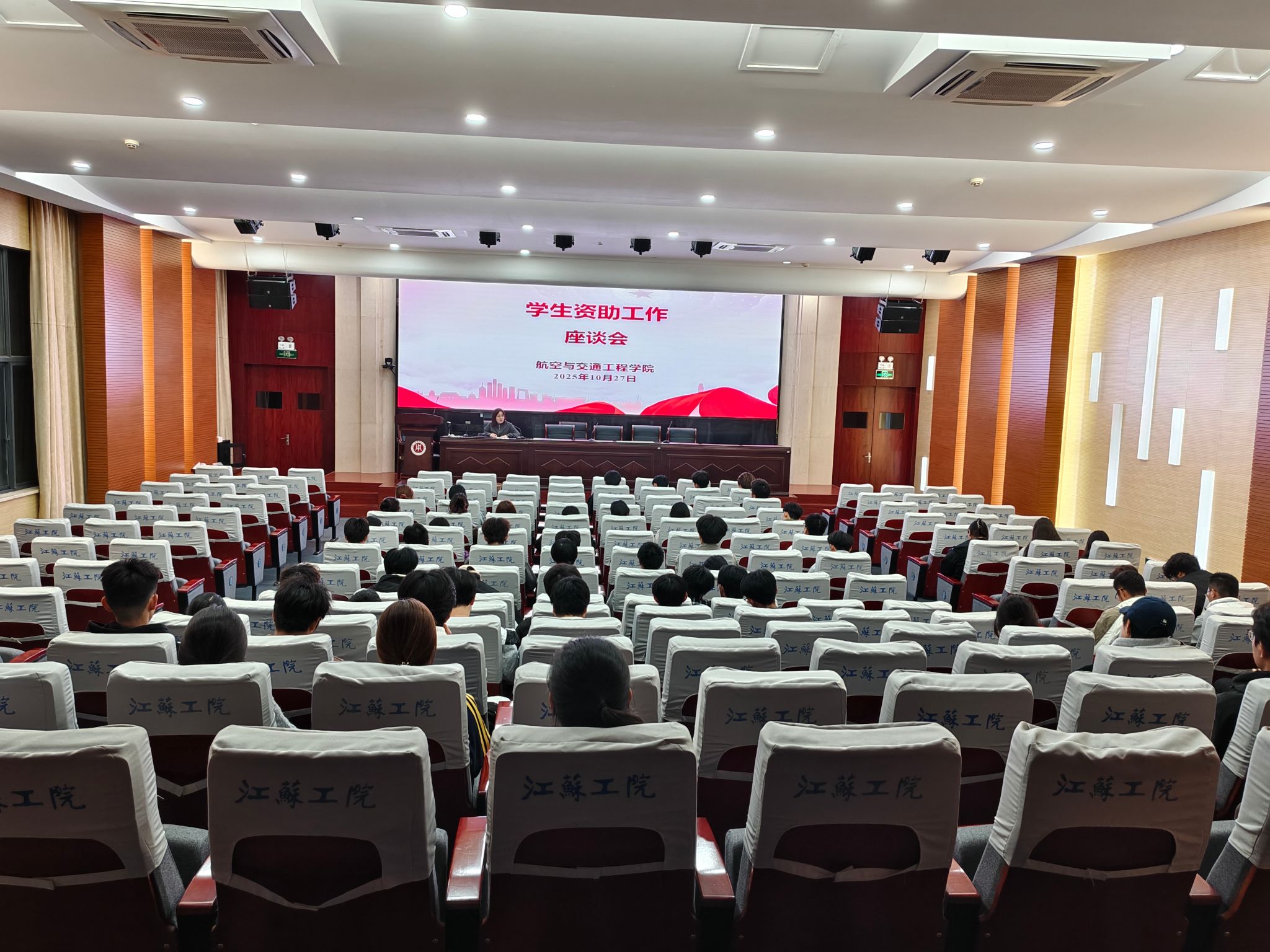 为精准落实学生资助工作,进一步了解我院受助学生现状,促进学院资助工作规范管理。10月27日晚,航空与交通工程学院在海门校区200人报告厅召开了学生资助工作座谈会。会议由辅导员方璐老师主持,各班受助学生代表和院励志学社成员参加座谈会。
