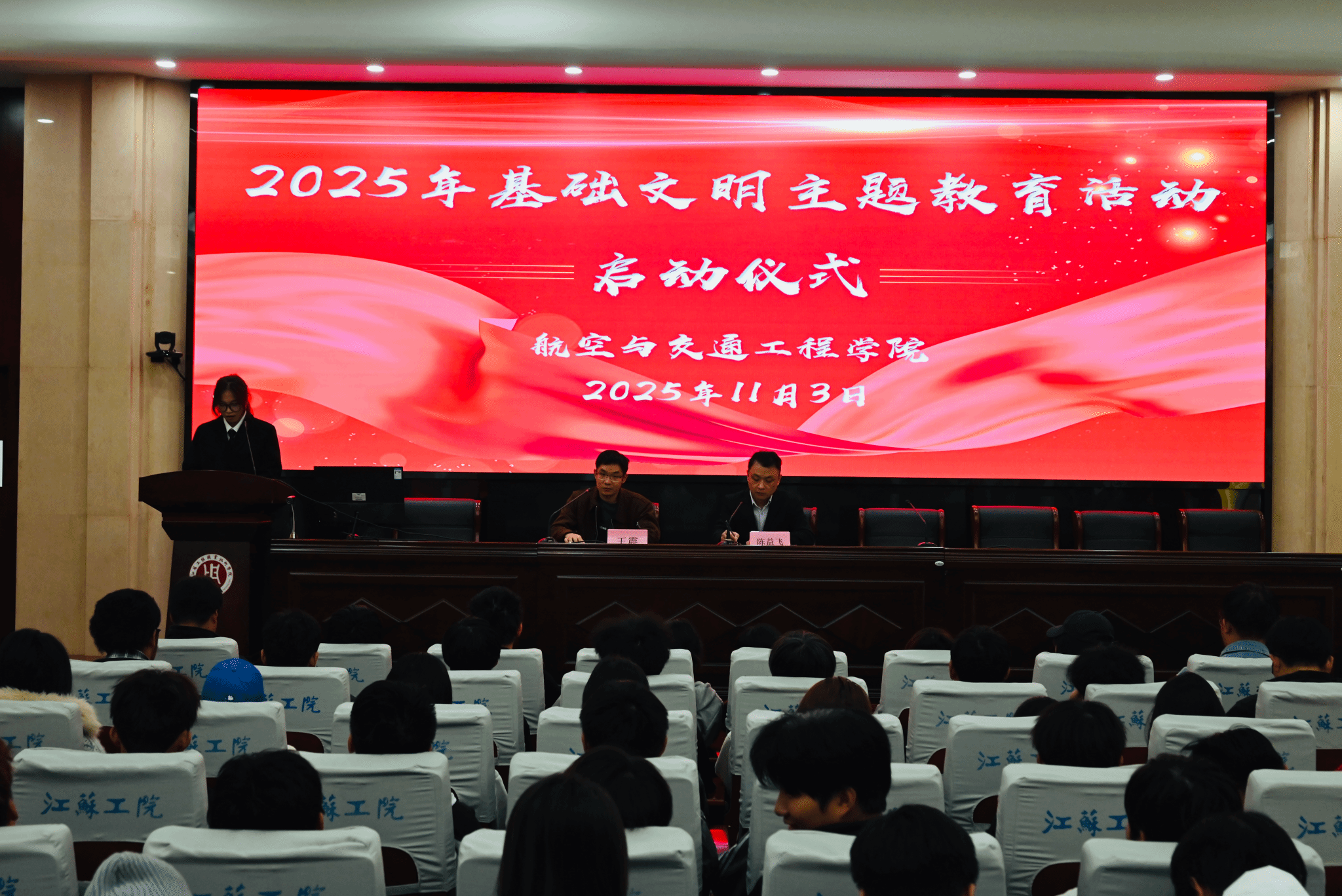 为深入推进校园精神文明建设,提升学生文明素养,发挥学生干部的示范引领作用,11月3日,航空与交通工程学院在海门校区学生社区200人报告厅隆重举行2025年基础文明主题教育活动启动仪式暨学生干部培训班。学院党总支副书记陈益飞、辅导员王震、在校学生干部参加了启动仪式,会议由王震主持。