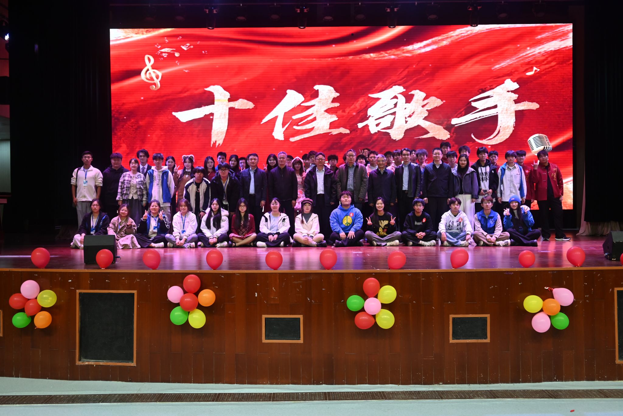 决赛现场氛围热烈,歌手比拼亮点纷呈。14位晋级选手怀揣热爱依次登台,他们以扎实的唱功、饱满的情感和富有感染力的舞台表现,将一首首经典曲目与流行佳作演绎得淋漓尽致,时而深情婉转,时而激昂高亢,每一段旋律都牵动着现场观众的心,掌声与欢呼声此起彼伏。评委团从音准节奏、情感表达、舞台表现力等多个维度进行综合评定,经过激烈角逐,最终25新能源一班郑智扬、25新能源三班林思佳、25空乘一班司京凤分别夺得冠军、亚军和季军,其余晋级选手荣获“十佳歌手”称号。