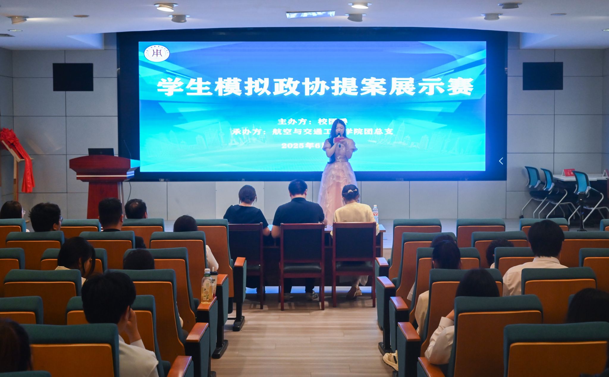 为引导青年学生关注国情民生、提升参政议政意识与实践能力,6月18日晚,由校团委主办、航空与交通工程学院承办的模拟政协提案展示选拔赛在强毅楼12楼演播厅成功举办。校团委书记徐磊,党委组织部副部长宁尚洁,全国青少年模拟政协提案指导专家、马克思主义学院副教授严楠担任比赛评委,学生代表100余人参加了活动。