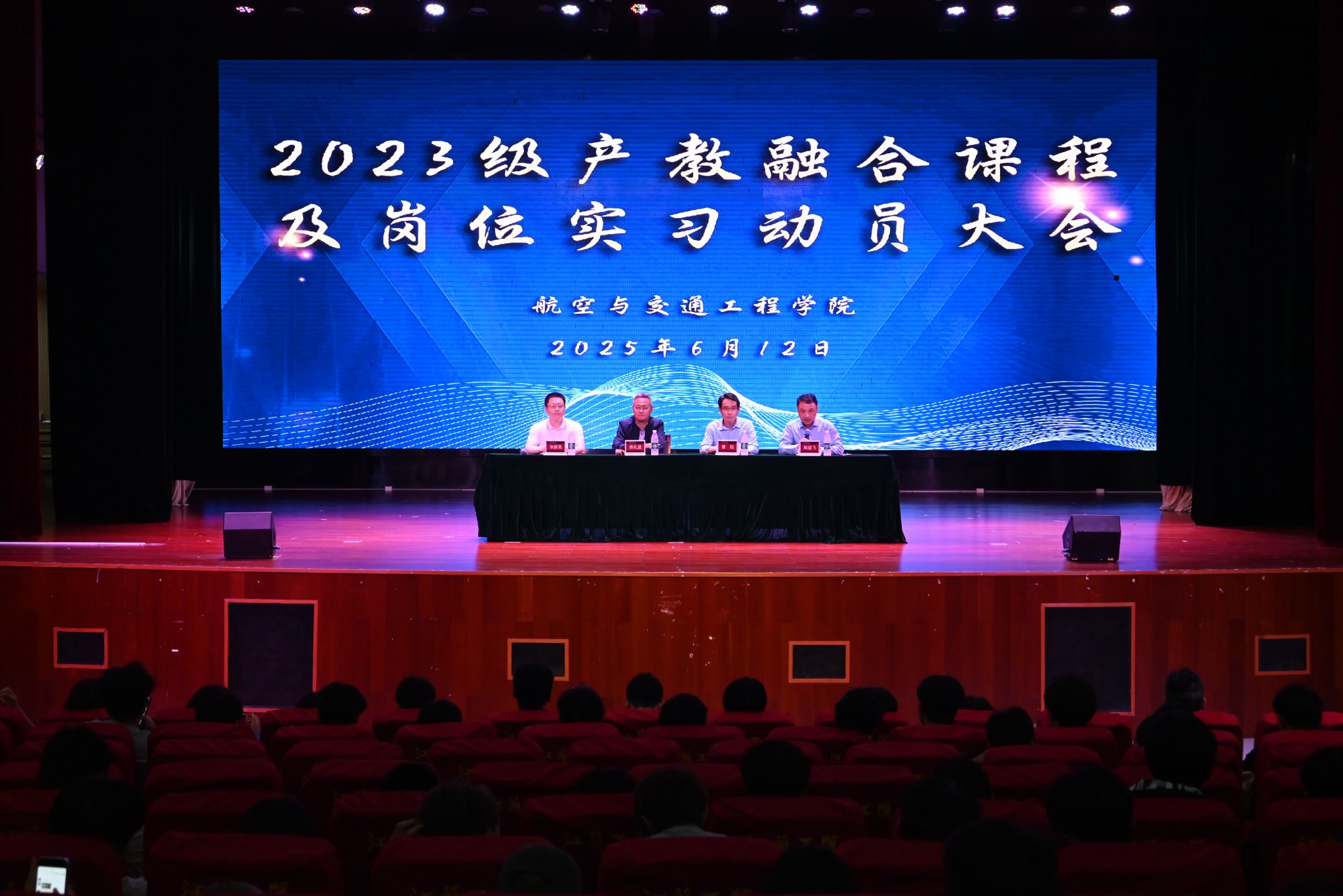 6月12日下午,航空与交通工程学院在海门800人报告厅召开2023级产教融合课程及岗位实习动员大会。学院党政班子成员、2023级班主任及全体学生参会,会议由党总支副书记陈益飞主持。