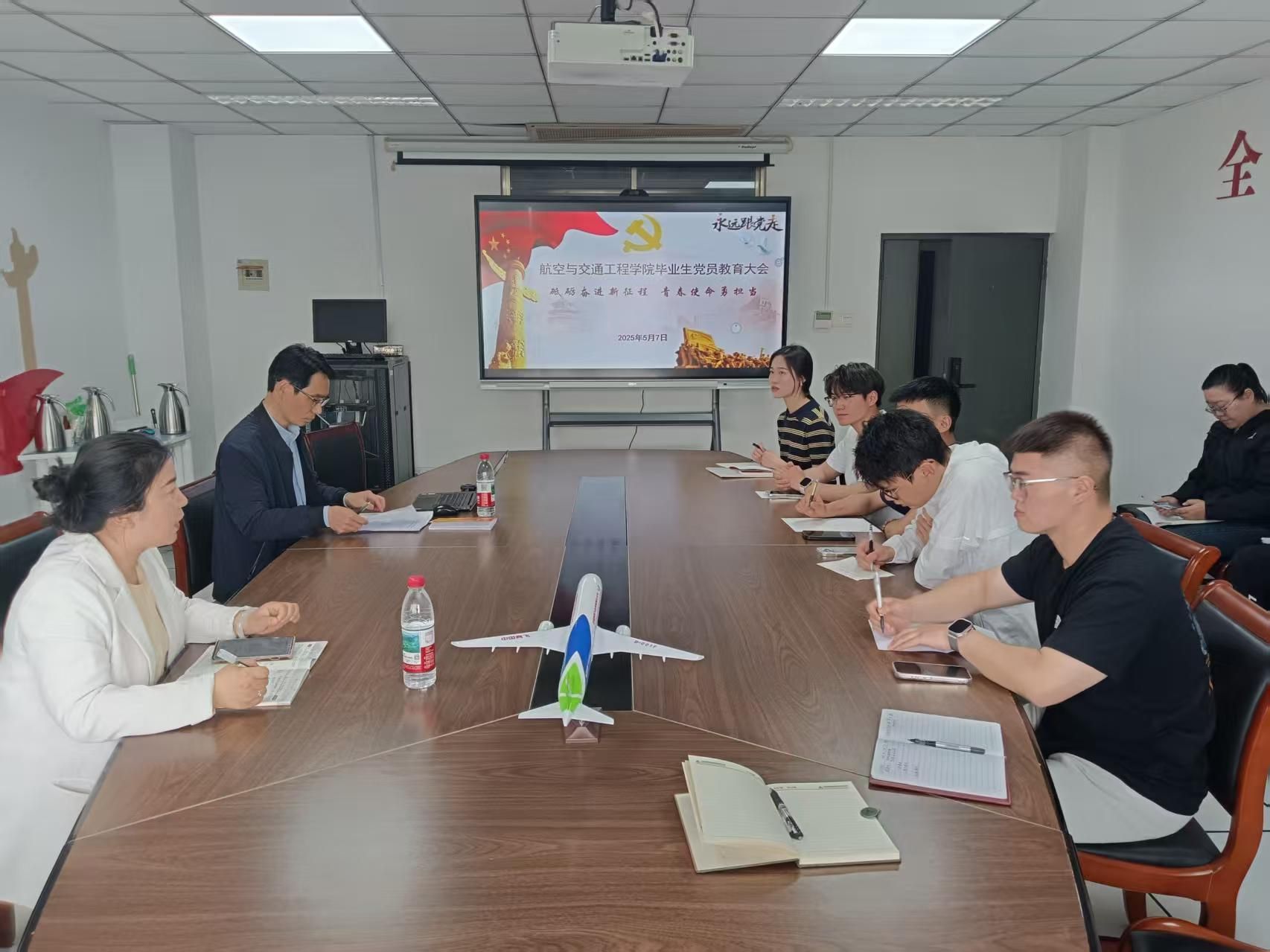 为了进一步加强毕业生党员的教育和管理,引导毕业生党员坚定理想信念,明确未来发展方向,做好毕业生党员离校前的教育管理工作,5月7日下午,航空与交通工程学院在强毅楼1104会议室召开2025届毕业生党员教育大会。学院党总支书记曹钰、10名毕业生党员参加会议,会议由组织员孔文利主持。