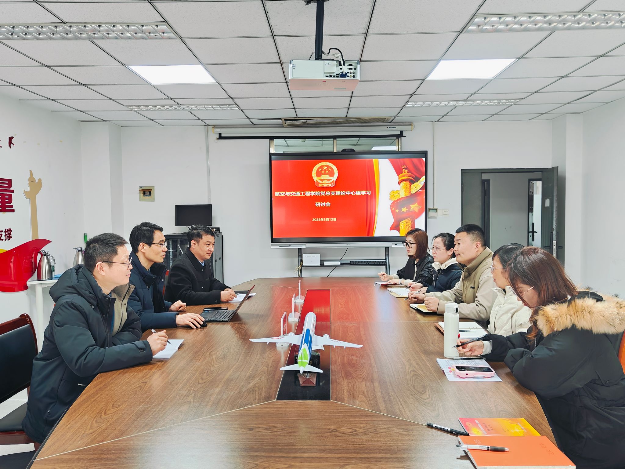 3月12日下午,航空与交通工程学院在强毅楼1104会议室召开党总支理论学习中心组集体学习会议,专题学习研讨习近平总书记在2025年全国两会期间的重要讲话和全国两会精神。学院党总支书记曹钰主持会议,党总支理论学习中心组成员参会。