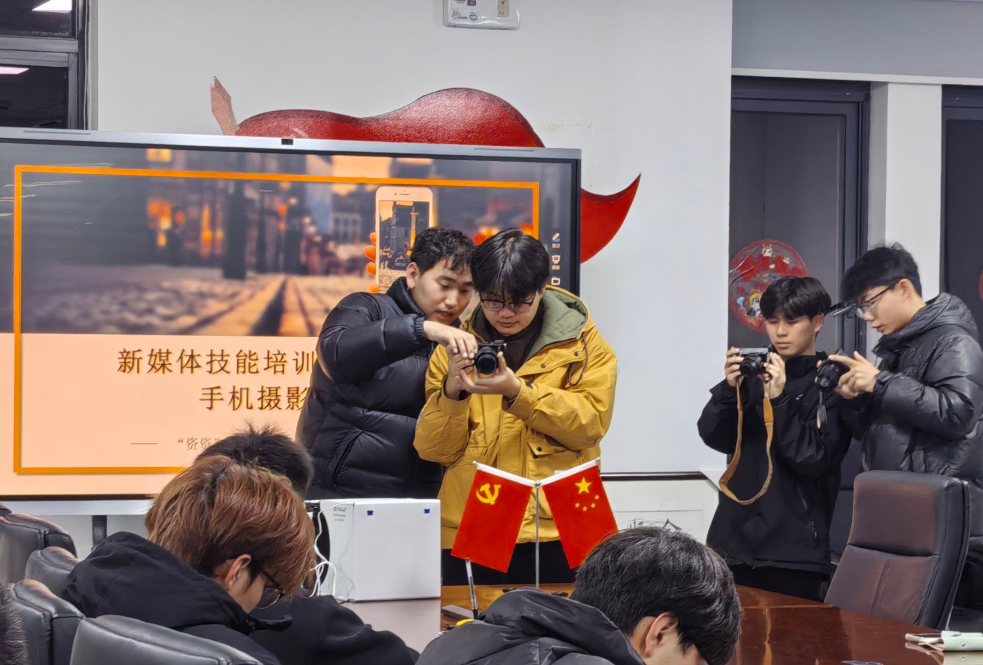 在实操教学环节,学员们在讲师指导下搭建迷你摄影棚,使用相机和手机对不同物品进行拍摄练习。随着快门声此起彼伏,学员们沉浸在光影的探索中。“原来改变拍摄角度、调整光线就能让照片的层次感更强,这次培训让我对摄影有了全新的认识!”一位学员在拍摄练习后兴奋地分享了自己的感受。邵国银对学员作品进行了现场点评,针对构图、光影处理、色彩搭配等方面存在的问题给予针对性指导,帮助学员更直观地理解摄影技巧,提升拍摄能力。