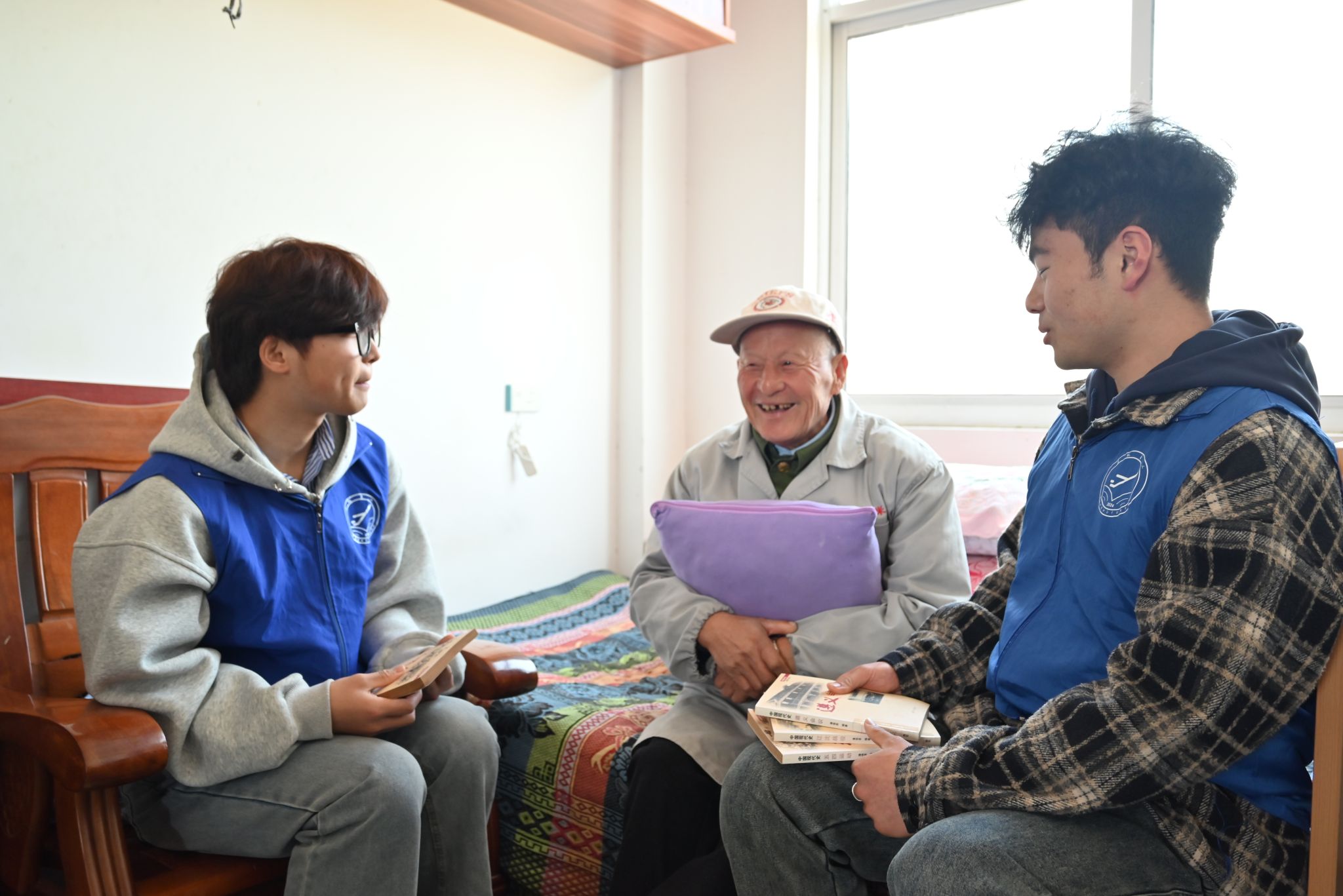 在敬老院里,学院入党积极分子开展了党史故事“送学上门”宣讲,与老人们开展党史学习教育共读、共进、共享活动。戴佳岑为老人介绍了四渡赤水的发端之役,共产党军事史上最能展现领导人英雄气概的一幕,也是毛泽东主席指挥的第一场战役——青杠坡战役。吕浩然老人具体讲解“四渡赤水”的大致经过,带大家共同领略毛泽东平生最得意的军事战役的高妙之处。本次宣讲主要面向独自身居养老院的老人们,他们远离亲人,缺少陪伴,入党积极分子期望用面对面,心贴心的交流方式,让党史故事跨代传承,也能在短暂的时间里陪伴他们,丰富他们的老年生活。引领老人们回顾过去,倾听他们与党成长的故事,也在老人们期许的目光下展望未来,更加深刻地感受到了作为新时代青年的责任和担当。