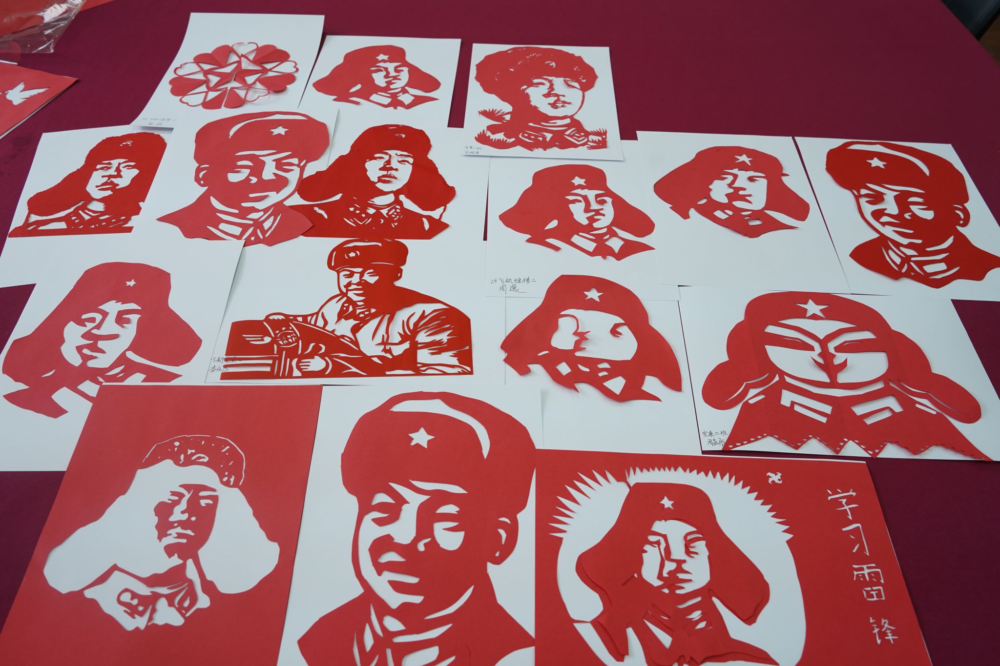 致用益生工作室学生干部代表通过“你对雷锋认识多少”“雷锋精神是什么”“为什么要弘扬雷锋精神”三个部分的宣讲,生动还原了雷锋的成长轨迹:从“节约箱”里省下的每一分钱,到“朋友圈”中战友间的互助温情;从“螺丝钉精神”的朴素诠释,到“为人民服务”的信仰升华。同学们纷纷表示,雷锋不仅是榜样,更是有血有肉、可亲可学的青春同行者。要从自身做起,从身边小事做起,将雷锋精神融入日常生活,积极参与志愿活动。红纸在指尖翻折,剪刀游走勾勒出雷锋肖像、五角星和“为人民服务”字样,师生利用各式各样的剪纸裁剪出自己心目中的雷锋形象,在一张张薄薄的红纸中剪出一段段值得代代传颂的故事。