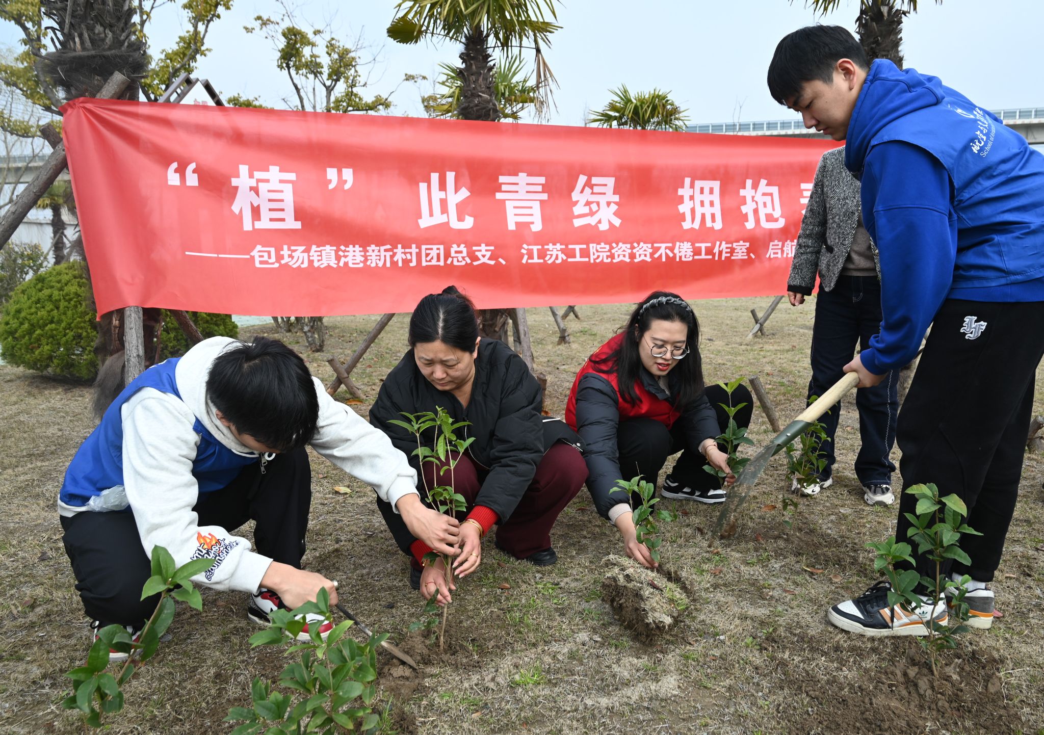 3月11日上午,航空与交通工程学院“资资”不倦发展型资助工作室、启航育人工作室召集学院资助宣传大使、团员青年、入党积极分子与海门区包场镇港新村团总支携手开展了“植此青绿 拥抱春天”植树节主题活动。活动通过“植树护绿+书香传递+政策宣讲”三维联动,为美丽乡村建设注入青春动能。