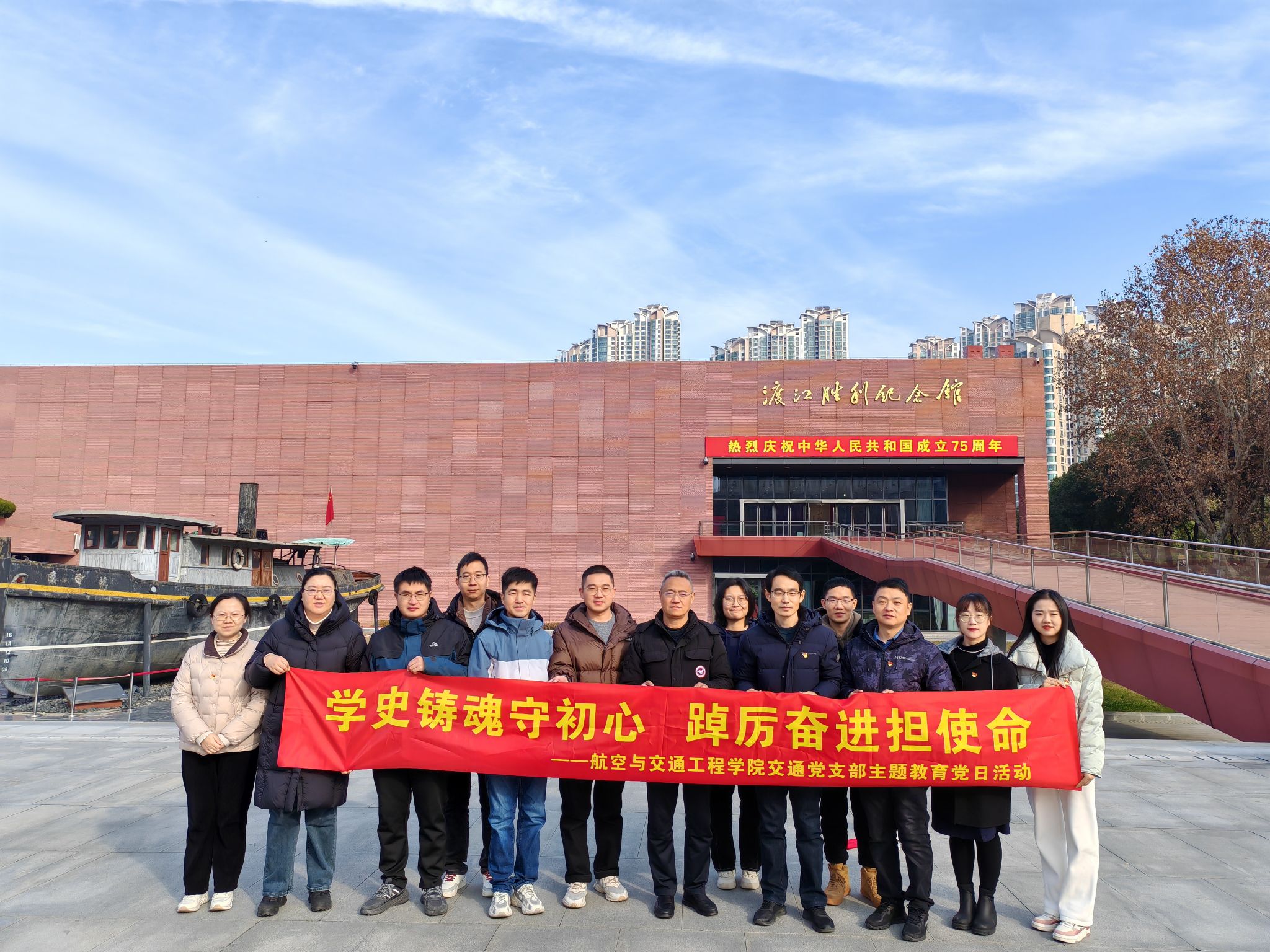12月21日-22日,航空与交通工程学院交通党支部前往南京开展“学史铸魂守初心,踔厉奋进担使命”主题教育党日活动,先后参观南京新四军驻高淳办事处旧址、梅园新村纪念馆、渡江胜利纪念馆以及中山陵等纪念场馆,进一步激发广大师生的爱国情怀与奋斗精神,增强党组织的凝聚力和战斗力。
