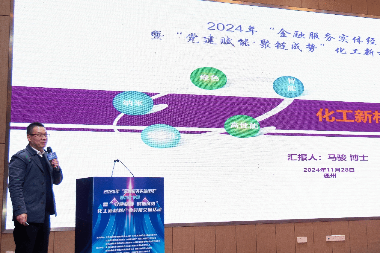 11月28日,2024年“金融服务实体经济”通州区专场暨“党建赋能·聚链成势”化工新材料产业对接交流活动在通州区江海智汇园隆重举行。航空与交通工程学院马骏博士受邀在交流活动中作主题演讲。