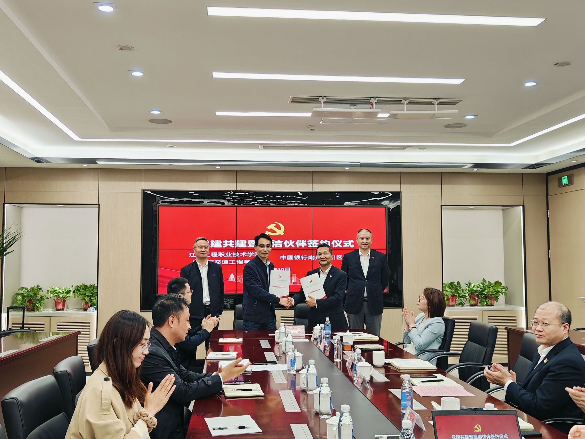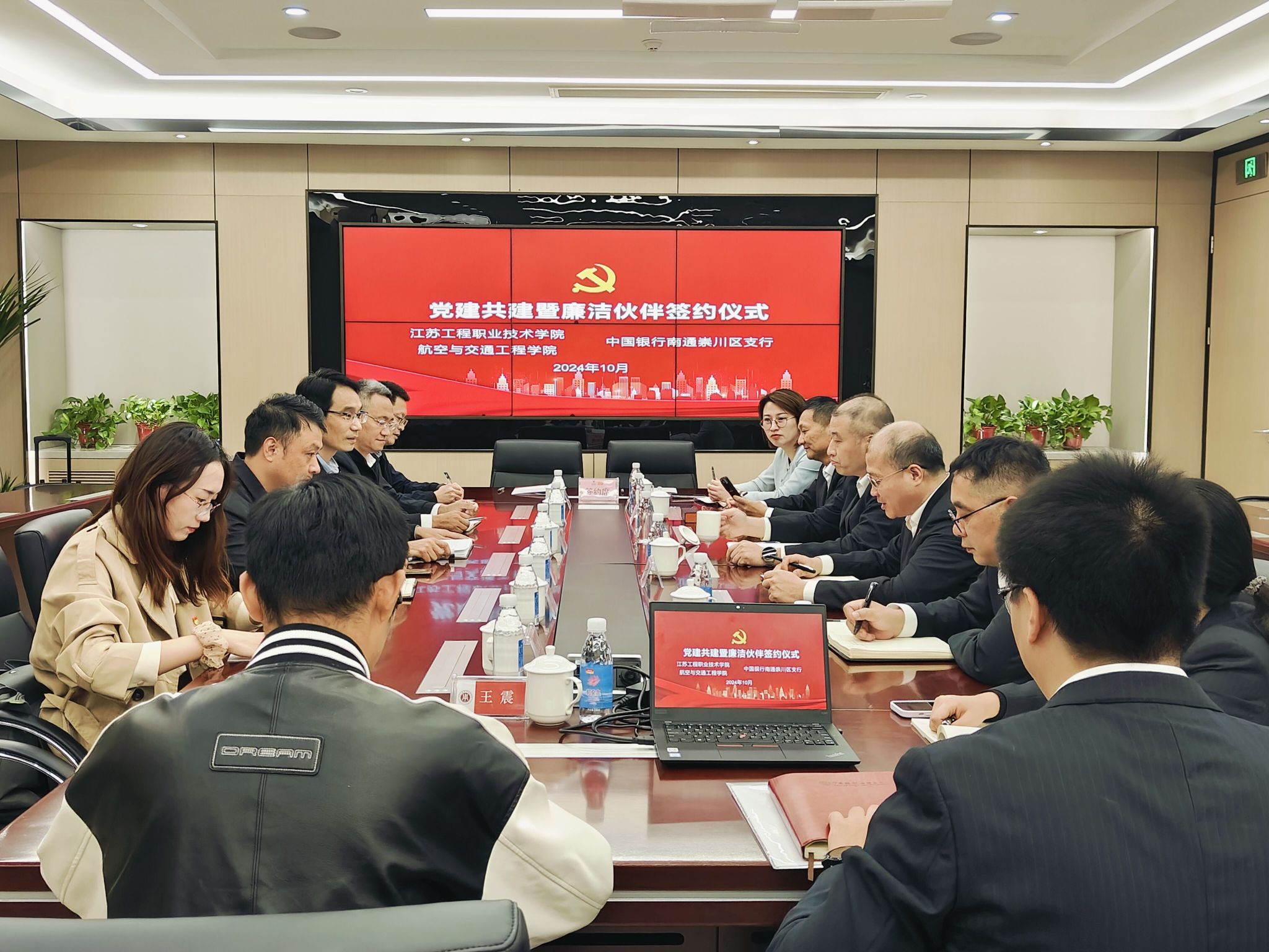 为发挥银校联动优势,探索高校党建共建新模式,10月23日,航空与交通工程学院与中国银行南通崇川区支行开展党建共建暨廉洁伙伴签约活动。中国银行南通分行高级经理、崇川区支行党总支书记、行长顾鹏飞,中国银行崇川区支行纪检委员宦睿等一行,航空与交通工程学院班子成员、交通党支部代表等参加会议。