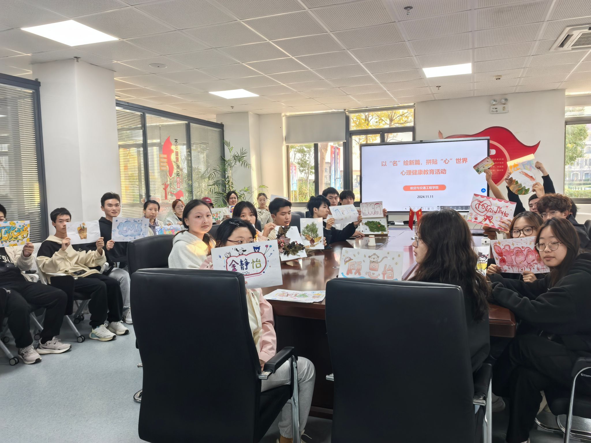 为推动学院心理育人工作的实效性,为校园心理健康教育注入新的活力,航空与交通工程学院于近期在海门“一站式”学生社区功能室内举办了“以‘名’绘新篇,拼贴‘心’世界”心理健康教育活动,23级、24级学生和心理辅导员谢晓凡参与了本次活动。