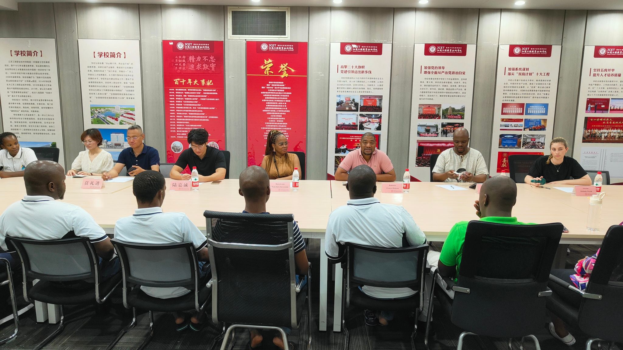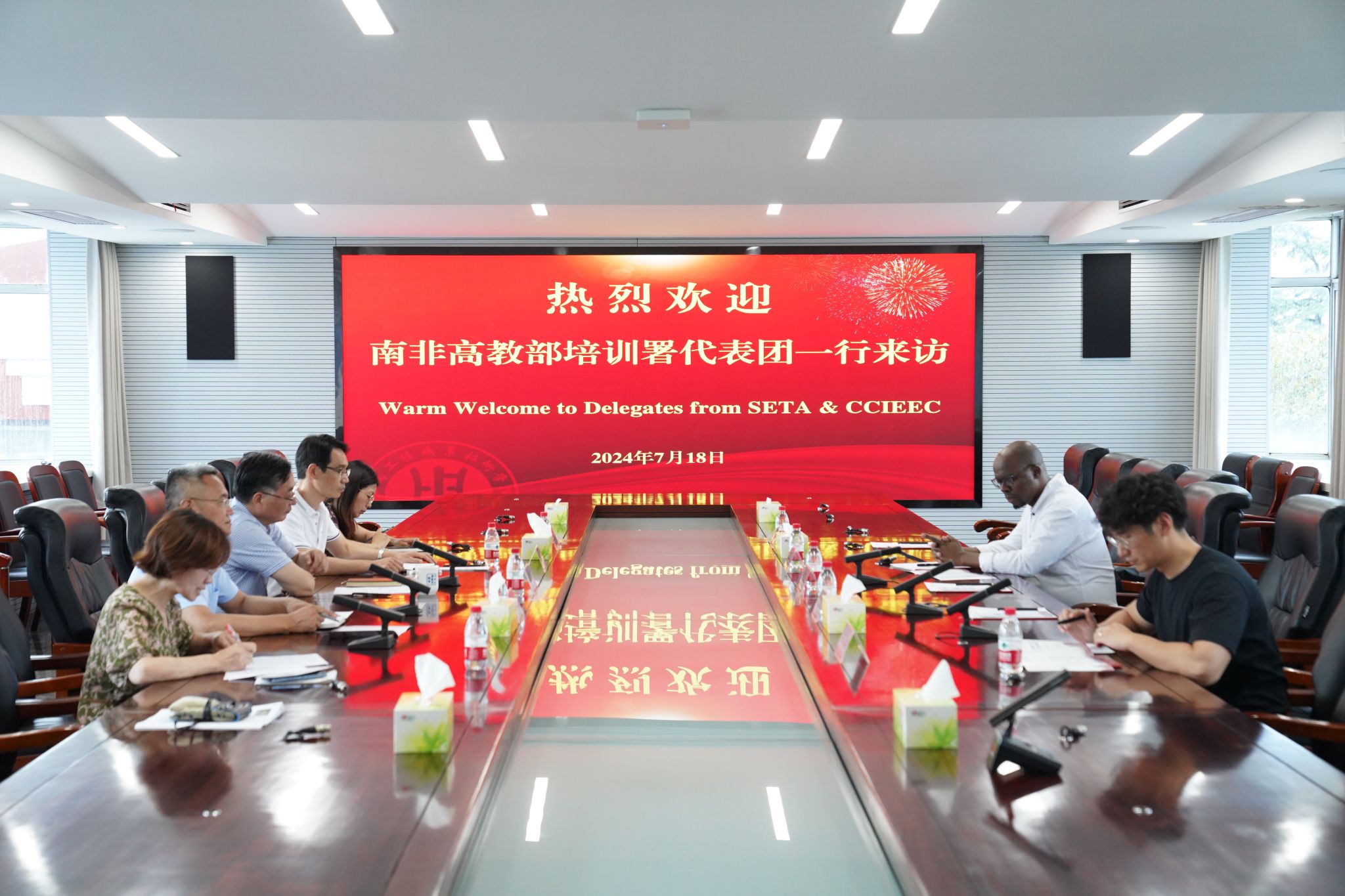 2024年7月18日,南非高教部培训署代表团一行五人来校交流访问,校党委副书记邓海龙、航空与交通工程学院党总支书记曹钰、院长贲礼进出席交流会。