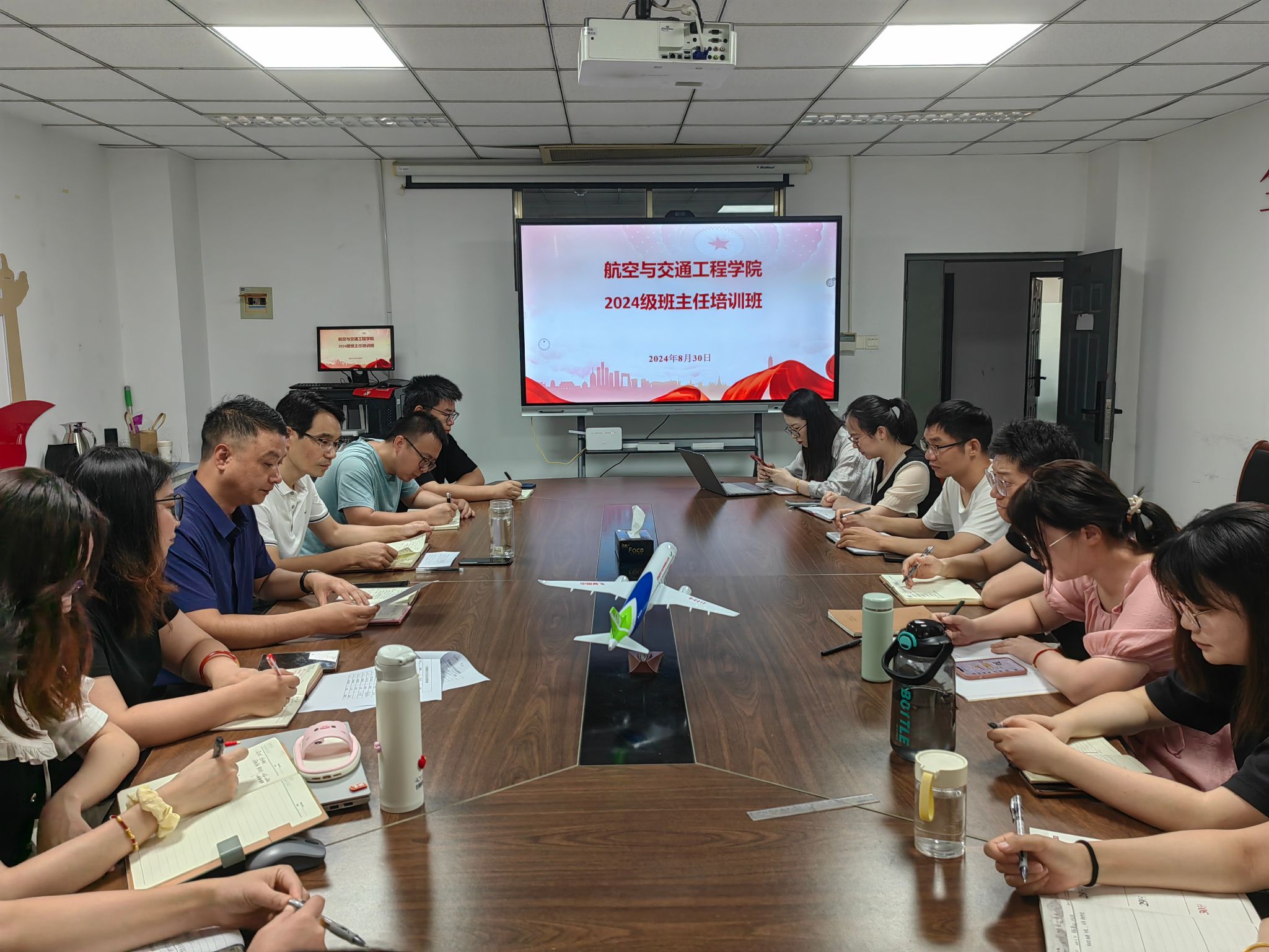 为加强新生班主任队伍建设,提高班主任履行工作职责能力,8月30日上午,航空与交通工程学院在强毅楼会议室举办了2024级新生班主任培训。航空与交通工程学院党总支书记曹钰、副书记陈益飞、学院全体辅导员以及2024级新生班主任参加了本次培训班。会议由陈益飞主持。