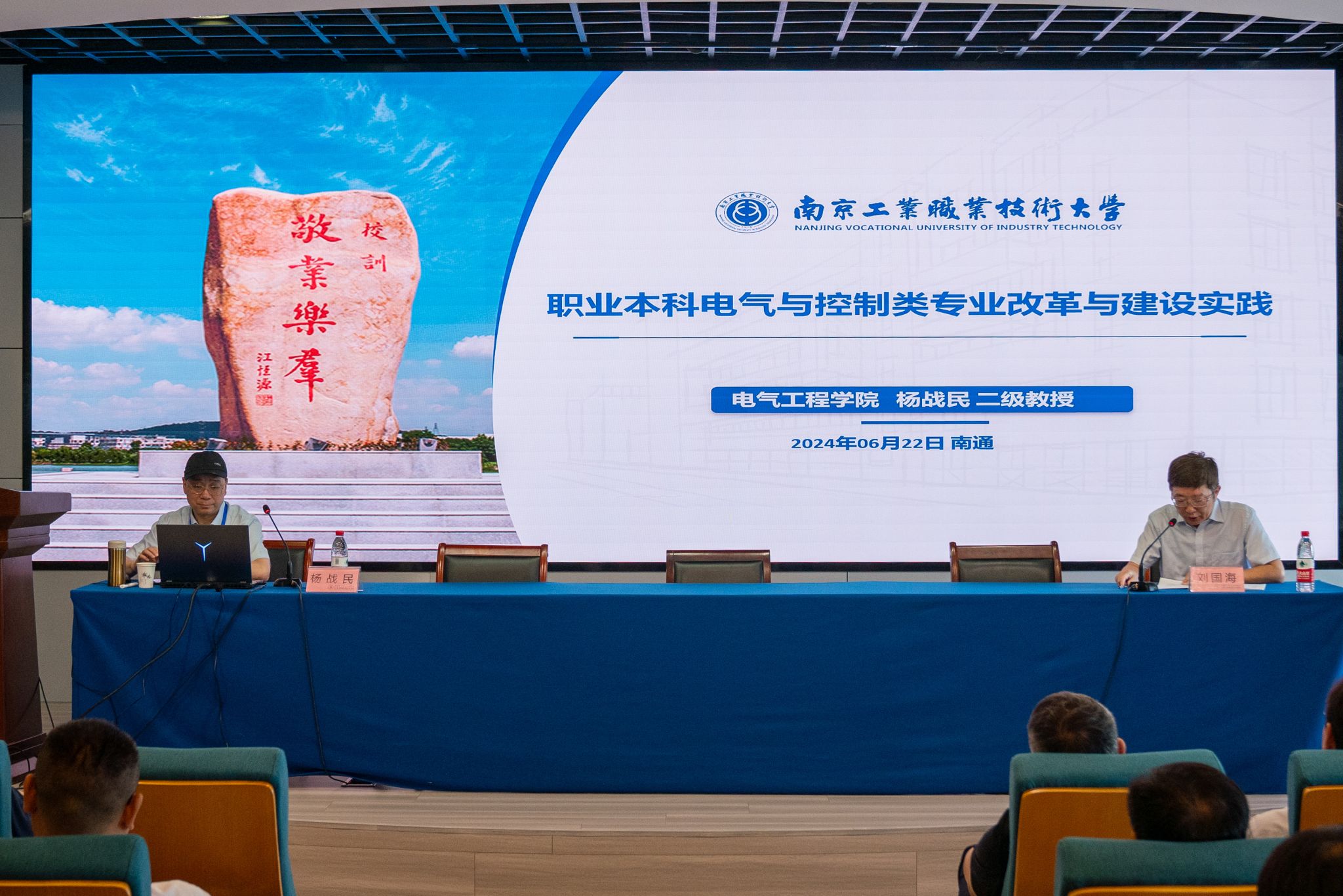 研讨会环节,来自常州纺织职业技术学院副校长、中国电工技术学会电气工程教育专业委员会副主任张文明教授,南京工业职业技术大学原电气学院院长、中国电工技术学会电气工程教育专业委员会副主任杨战民教授,国家名师、金华职业技术大学机电学院院长、全国高校“黄大年”式教师团队负责人戴欣平教授,江苏工程职业技术学院党委副书记、校长张忠,南通大学电气与自动化学院原副院长、国家科技专家库在库专家、江苏省职业院校技能竞赛赛项专家姜平教授等5位专家分别就“国家一流规划教材与课程资源建设”“职教本科电气与控制类专业改革与建设”“机电类专业项目化教学改革与实践” “助力‘一带一路’建设,打造新能源江苏‘职教出海’品牌”“第三届全国高校电气类专业青年教师实践教学设计创新竞赛”等专题从多角度进行了内容丰富、精彩纷呈的大会报告。