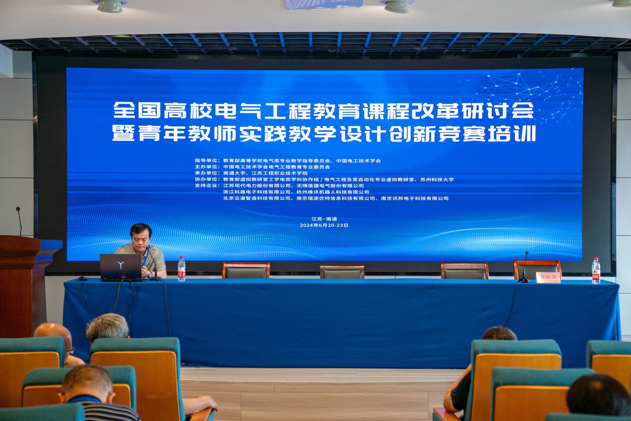 2024年6月20-23日,由中国电工技术学会电气工程教育专业委员会主办,南通大学、江苏工程职业技术学院共同承办的“全国高校电气工程教育课程改革研讨会暨青年教师实践教学设计创新竞赛培训”在南通成功举办。江苏省科学技术协会副主席、教育部高等学校电气类教学指导委员会主任胡敏强教授,东南大学国家级电工电子实验中心主任、中组部“万人计划”国家教学名师、东南大学首席教授胡仁杰教授,哈尔滨理工大学研究生处处长、黑龙江省青年教学名师陶大军教授等专家,相关教指委委员,以及100余位专家学者和教师代表到场参会。