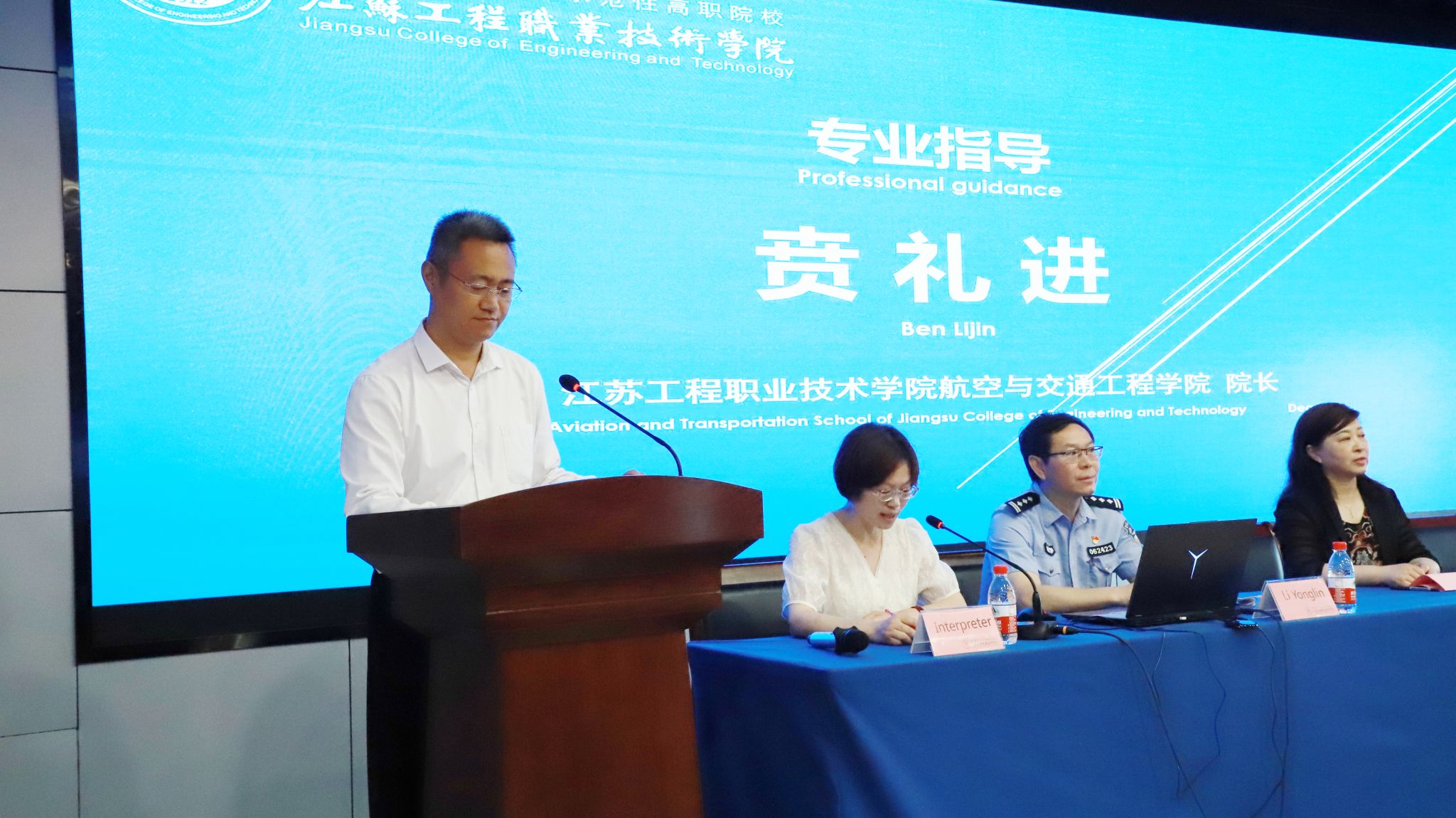 航空与交通工程学院院长贲礼进对本期新能源装备技术专业留学生技能培训进行介绍。他表示,为高质量共建“一带一路”,更好地开展国际交流,服务中国新能源企业“走出去”,培养更多的高素质技术技能型人才,学校将提供优良的教学条件和优质的服务保障,将深厚的专业知识和精湛的实践操作融入课堂,全面提高国际人才培养质量。