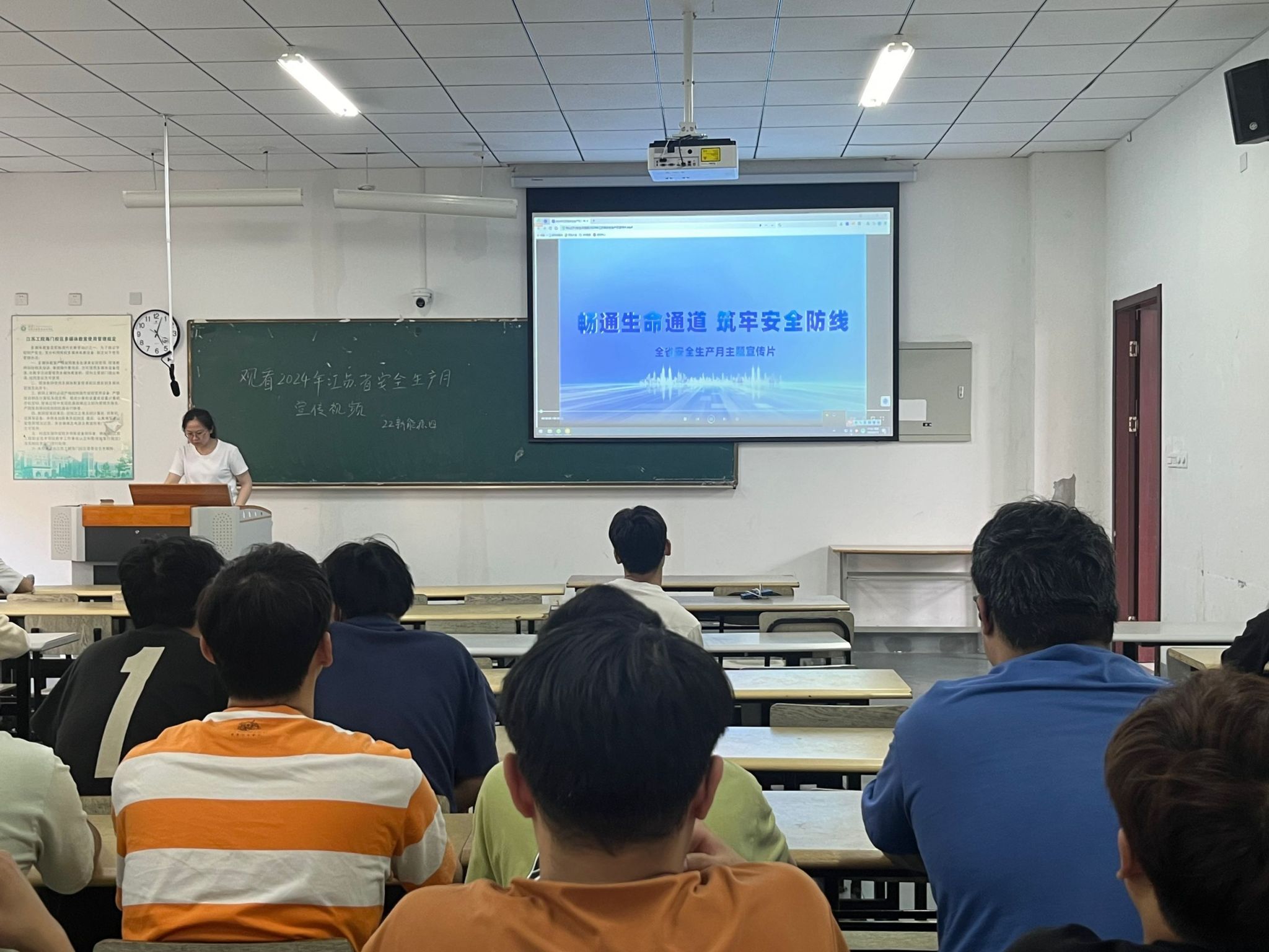 为深入学习宣传贯彻习近平总书记关于安全生产重要论述和重要指示批示精神,提升学生的安全意识和应急能力。在第23个全国“安全生产月”期间,航空与交通工程学院于近期组织学生开展安全教育并观看“2024年江苏省安全生产月”宣传片,全体22、23级学生及班主任参加了本次活动。