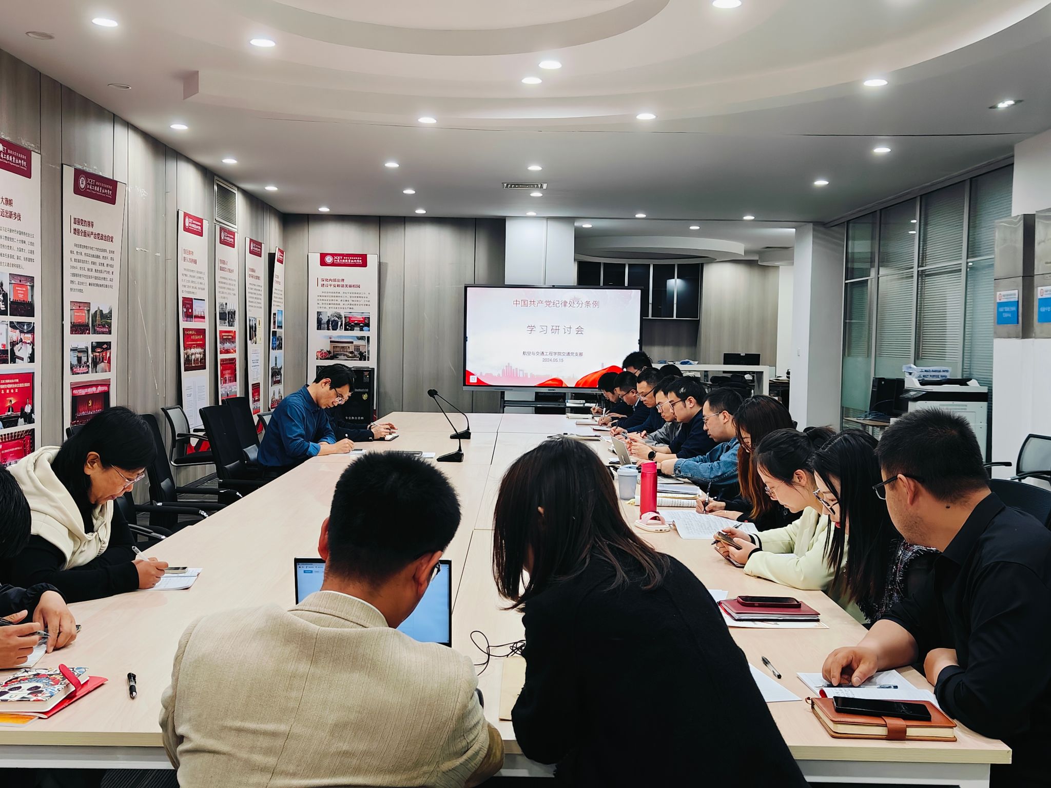 紧接着,交通党支部和航空党支部按照规定动作不变形、自选动作有特色的党纪学习教育要求,利用“三会一课”展开支部学习。交通党支部党员刘英伟博士表示,作为高校教师“学纪、知纪、明纪、守纪”要回归“育人”本位,用心上好每一堂课,用情关爱每一名学生,以“吾日三省吾身”的精神,反躬自省自身的规则意识、道德品行、言行举止,在自省中知敬畏、受警醒、明方向。航空党支部辅导员项超老师表示,党纪是党员日常言行的衡量标尺,要自觉用党规党纪校正思想和行动,真正使学习党纪的过程成为增强纪律意识、提高党性修养、强化担当意识和进取精神的过程。
