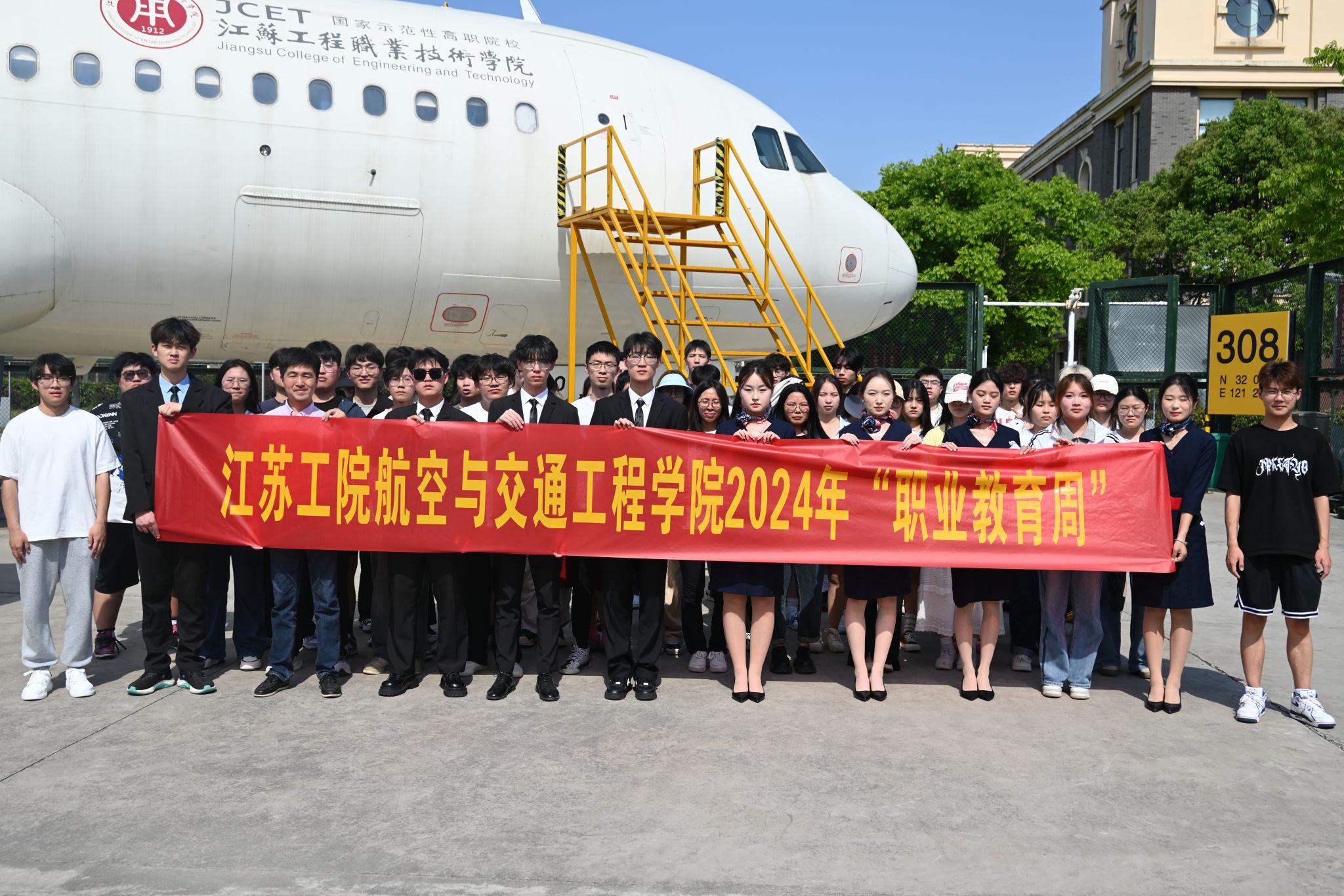 5月17日,航空与交通工程学院在海门校区A320停机坪开展空客A320飞机开放日活动。共100余名学生参加了活动。