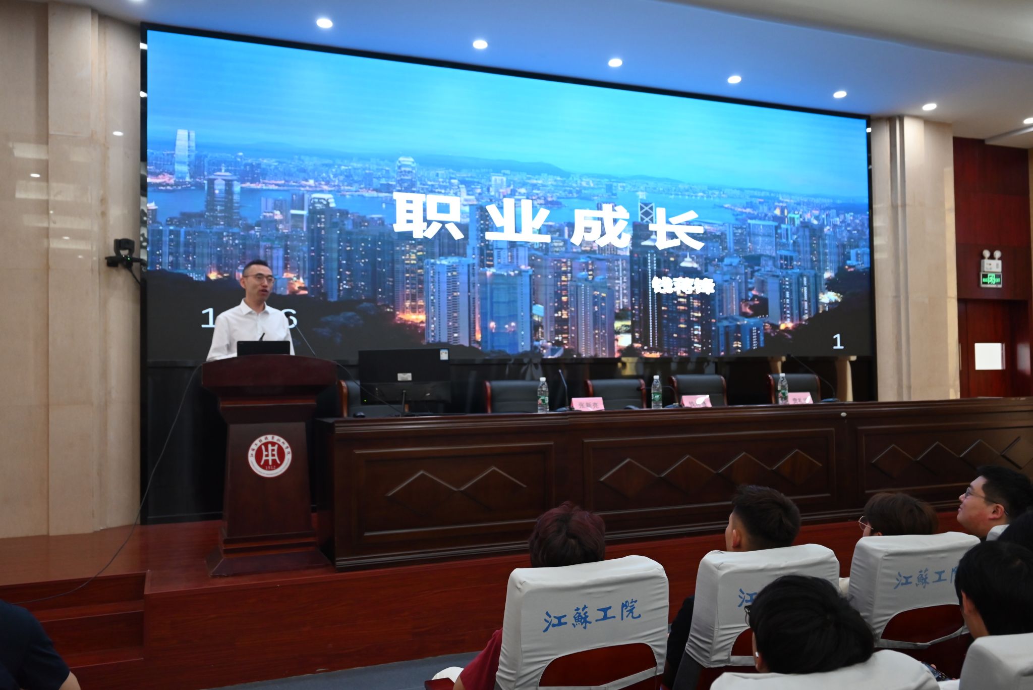 为引导大学生科学规划职业生涯,提升个人职业规划能力和就业竞争力,奠定未来职业发展的基础,5月22日下午,航空与交通工程学院《大学生职业成长与就业指导讲座》在海门校区200人报告厅开讲。中天科技集团人力资源部总经理、江苏省产业教授、南通市劳动模范钱蒋锋专题授课,航空与交通工程学院院长贲礼进、副院长张新亮出席活动,学院22、23级200名学生和老师代表聆听了讲座。