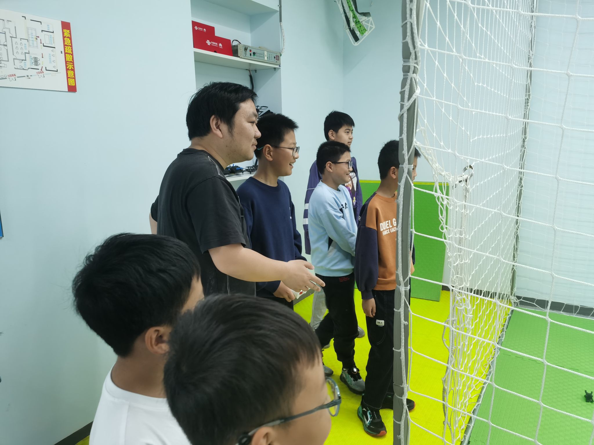 “哇,好神奇”,在孩子们惊奇的目光中,黄睿杰向小学生们展示了各种型号的无人机,讲解了无人机发展历程、基本原理以及应用领域,并现场演示了无人机起飞、悬停、飞行和降落。随后他带领小学生们一起完成无人机穿越障碍飞行,整堂课洋溢着孩子们的欢声笑语,孩子们纷纷表达出对无人机的喜爱。