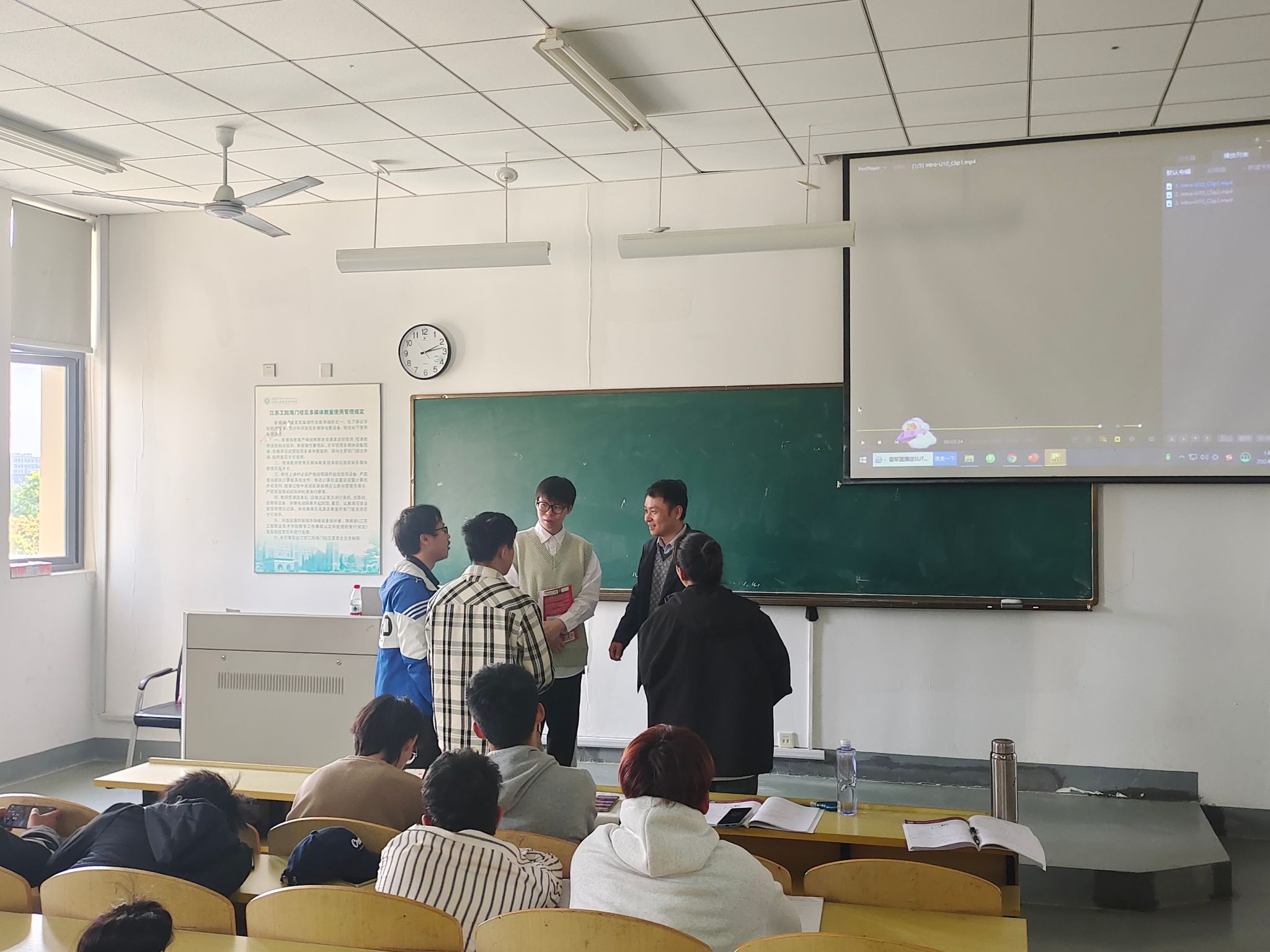 会前,与会一行人来到教室,通过与任课教师、学生的交谈,对课堂教学、教风、学风情况等方面展开了调研。会上,温蝶就学风建设的重要性、课堂教学情况、上课考勤情况、教务日志记录情况等方面强调了学习委员作为班主任和班级学生的桥梁纽带,务必要及时真实地反映班级学风学情情况,发挥好自身在学风建设中的骨干力量。学习委员表示在有“自己是学业的第一责任人”意识的前提下,会带动班级学生一起学习,共同营造良好的班风学风。陈益飞总结时指出高校学风建设是一项系统工程,需要高校管理层、教师、学生三方的共同参与和努力。他指出作为新时代的大学生,一要从我做起,做优良学风的倡导者;二要以身作则,做勤学苦练的实践者;三要率先垂范,做发挥作用的示范者。