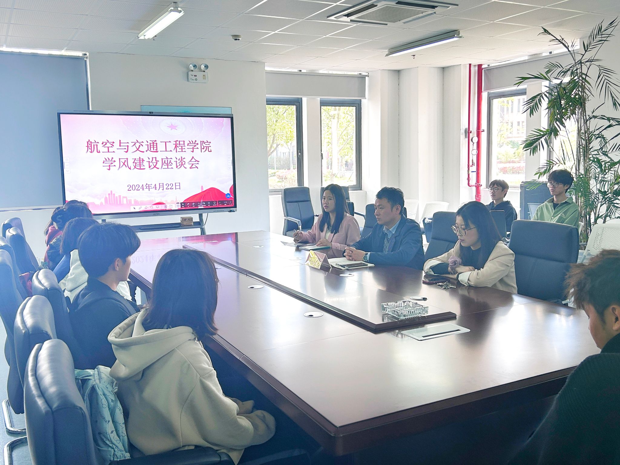为切实加强学院学风建设,调动学生学习的主动性和积极性,营造出浓厚的勤学习、正学风的氛围,4月22日,航空与交通工程学院在海门校区一站式学生社区开展学风学情调研会,航空与交通工程学院党总支副书记陈益飞、辅导员黄新颖、各班学习委员参加了座谈会,会议由温蝶主持。