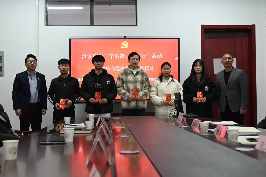 3月4日,航空与交通工程学院与南通市淮安商会在海门校区4号实训楼403会议室举办了“学雷锋,助学行”活动暨校商党建共建签约仪式。南通市淮安商会会长潘德顺、支部书记刘亚洲、副会长蔡美霞、杨天龙、秘书长管其光,航空与交通工程学院党总支书记曹钰、副书记陈益飞,辅导员方璐、孔文利及受助学生代表参加了活动,活动由陈益飞主持。