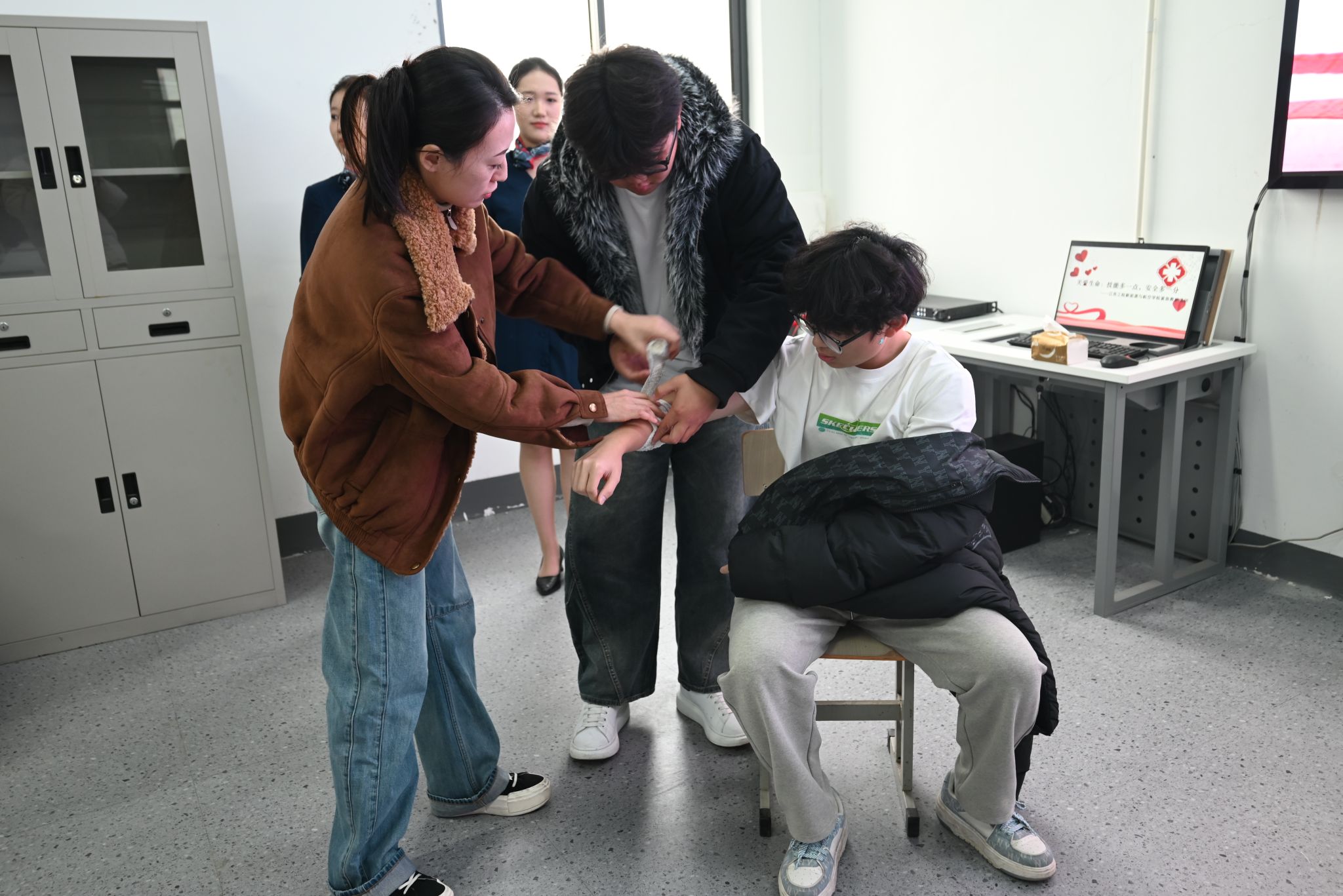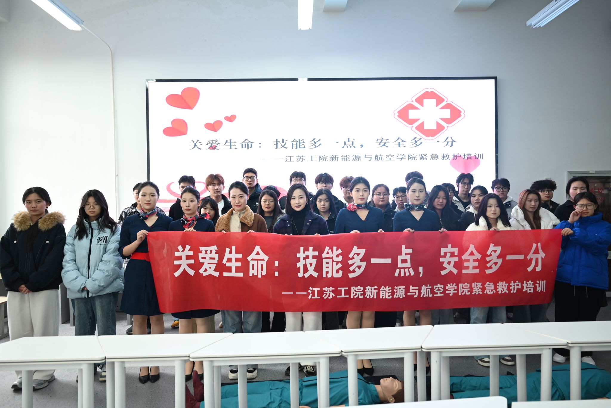 12月10日,新能源与航空学院以“关爱生命:技能多一点,安全多一分”为主题,成功举办紧急救护志愿服务培训活动。本次活动邀请学院商务教研室吴琼、徐艺瑄老师进行专业授课,学院百余名学生积极参与,通过理论讲解与实操演练相结合的方式,普及应急救护知识,提升学生自救互救能力。