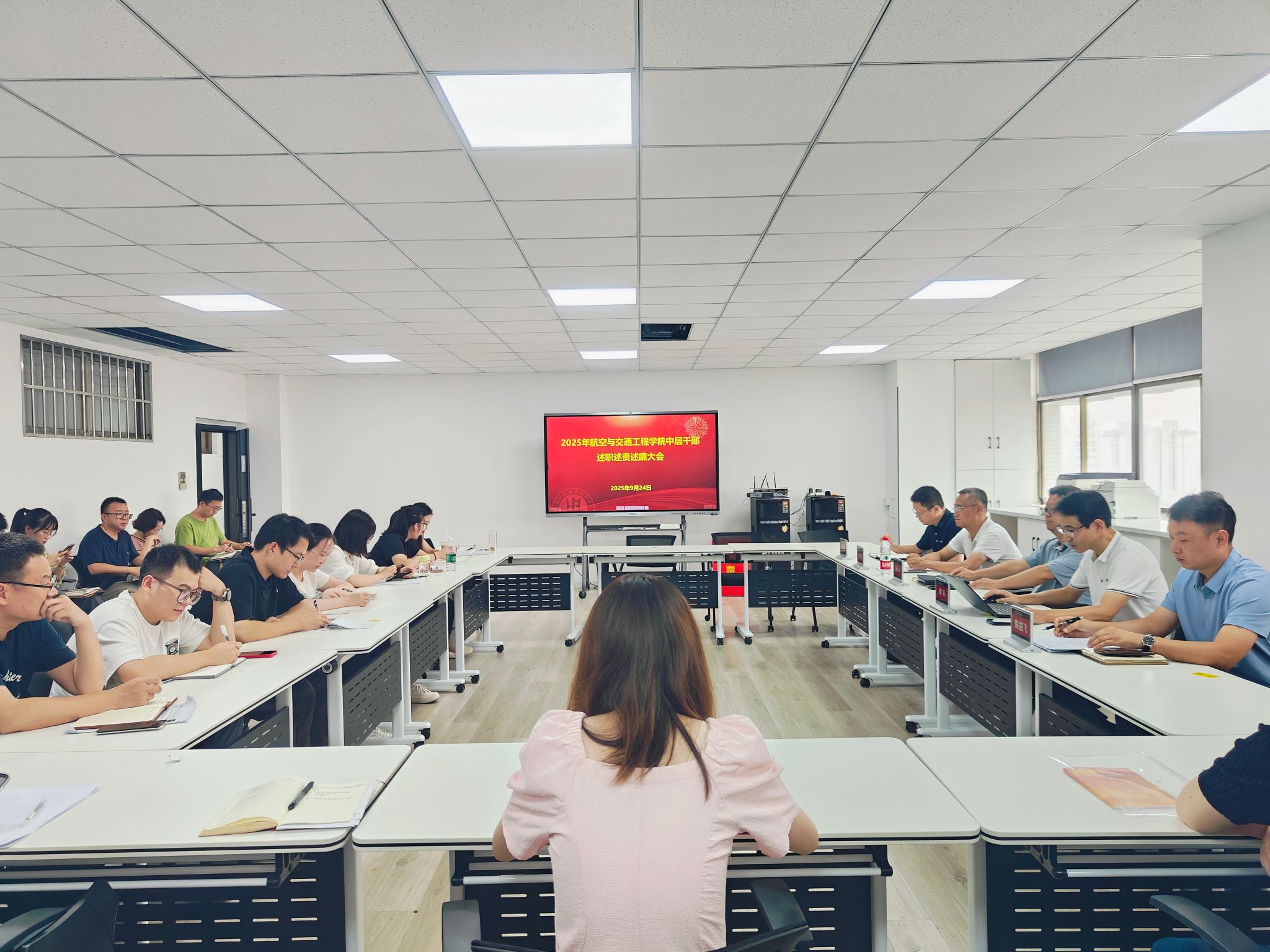 9月24日下午,航空与交通工程学院在强毅楼11楼会议室召开2025年中层干部述职述责述廉大会。校党委委员、副校长孙兵、航空与交通工程学院全体老师参会,会议由学院党总支书记曹钰主持。